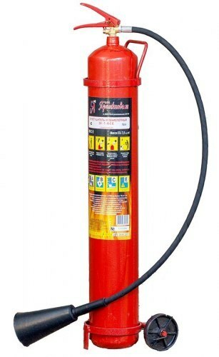 Передвижной углекислотный огнетушитель ОУ-10 для для тушения горючих жидкостей, газов и электрооборудования.