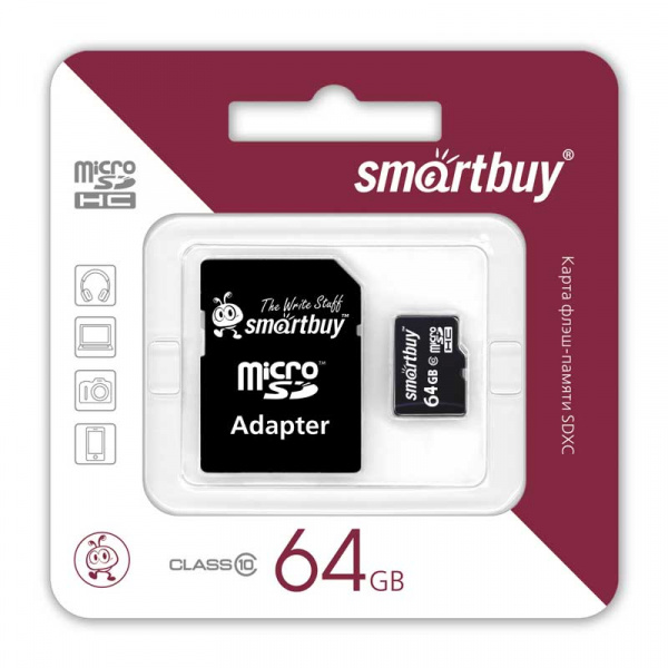 Карта памяти microSDXC класса 10 от компании Smartbuy обладает отличными характеристиками при своем компактном размере, что составляет всего лишь 1/10 SD карты. Ввиду поддержки 10 класса, карта подходит для современных мобильных устройств.