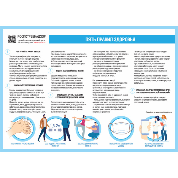 —Стенд «ПЯТЬ ПРАВИЛ ЗДОРОВЬЯ" (Пластик 700х1000х3)